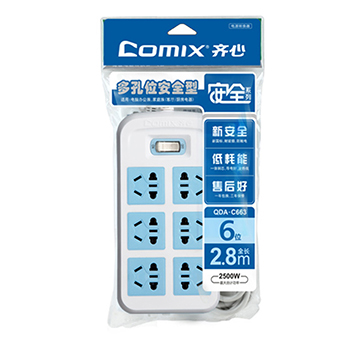 商品名称:齐心 QDA-C663 安全系列排插/插座/6位*2.8米 商品编号:11435 基本单位:个 最小采购单位:个(1) 箱包装量:1